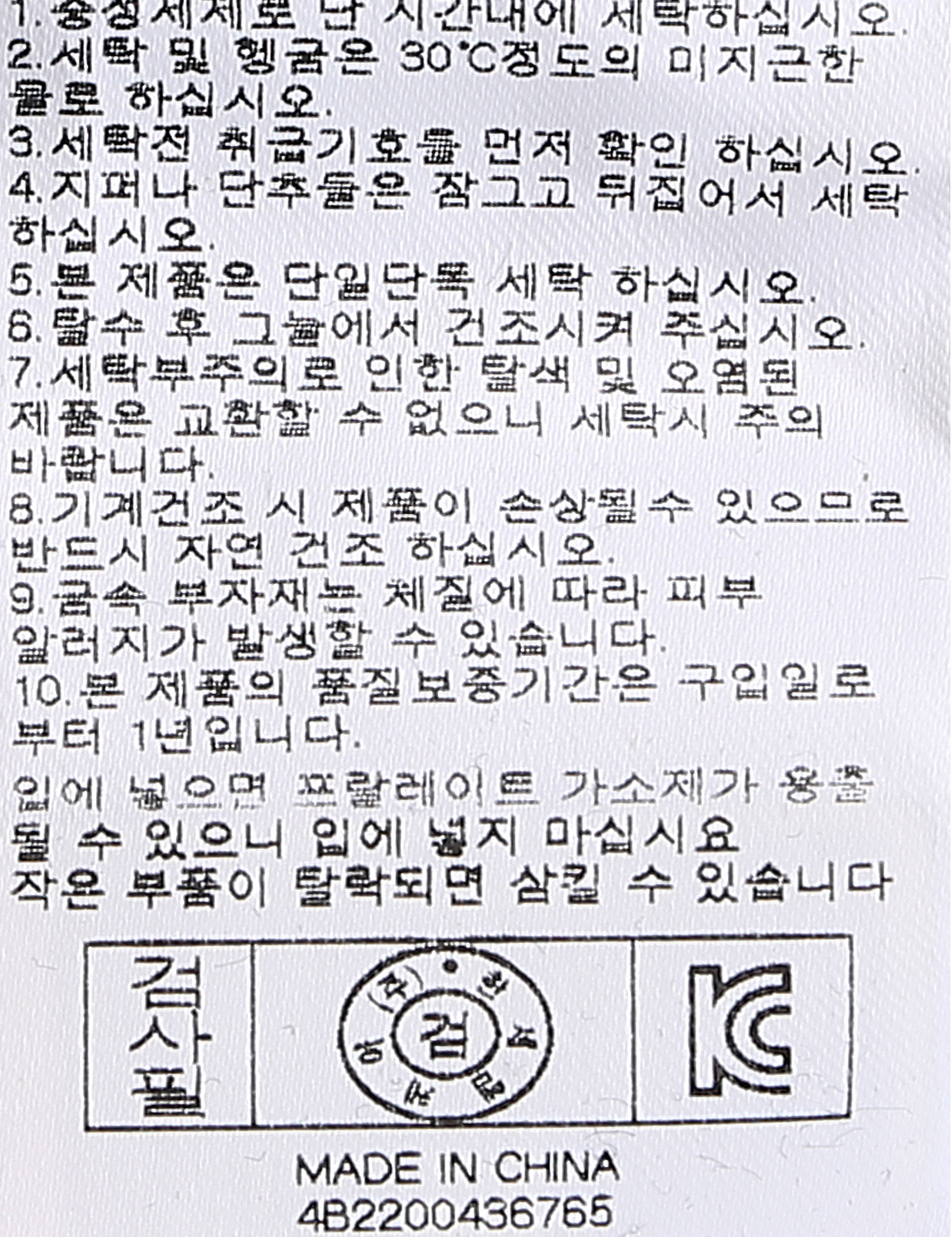 세탁방법 및 취급시 주의사항 중성세제로 단 시간내에 세탁하십시오.(케어라벨참고)