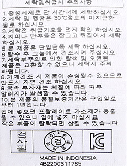 | 세탁방법 및 취급시 주의사항 | 중성세제로 단 시간내에 세탁하십시오.(케어라벨참고) |