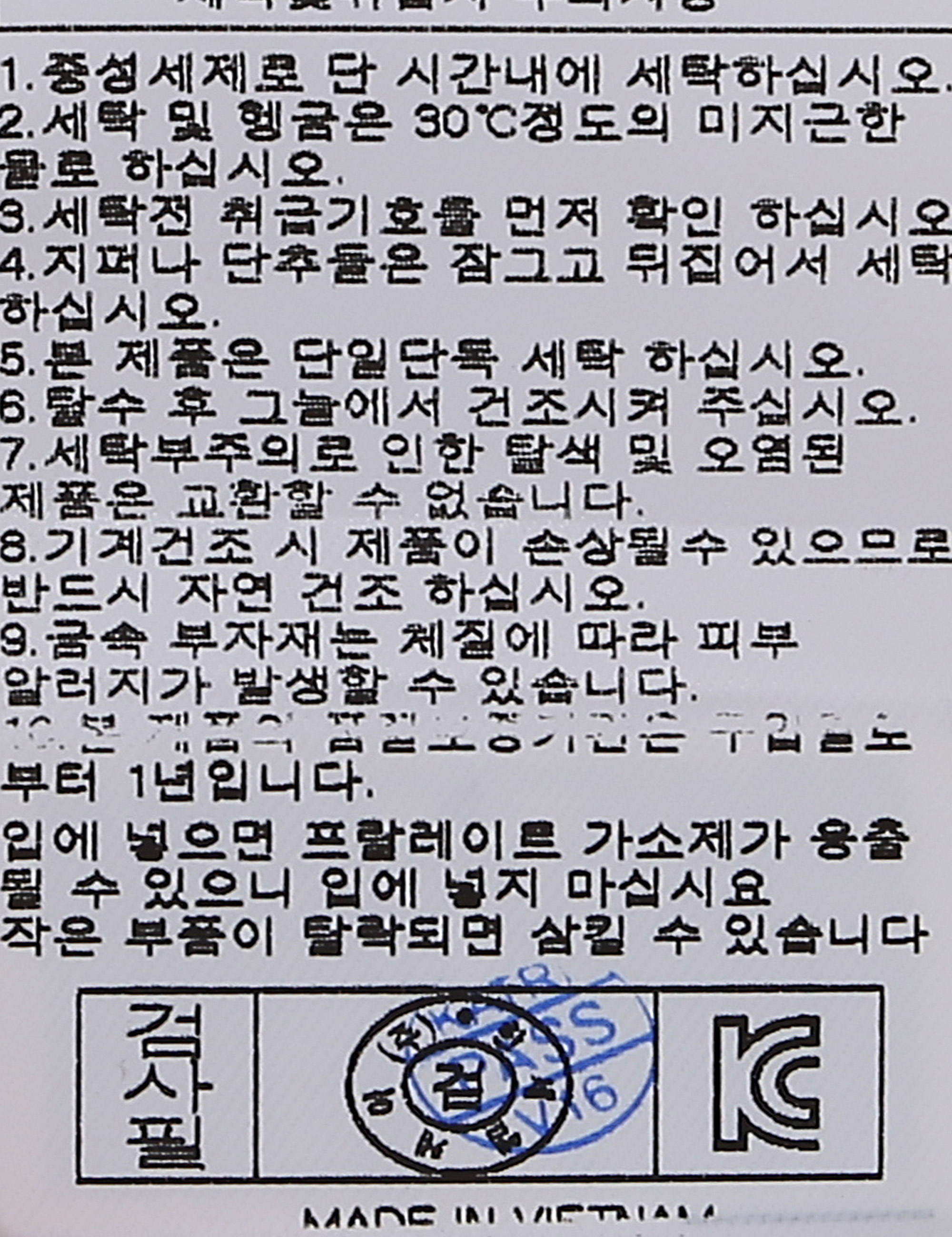| 세탁방법 및 취급시 주의사항 | 본 제품은 손세탁 하십시오.(케어라벨참고) |