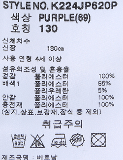 브랜드 홈 바로가기| 제품소재 | [겉감]폴리에스터100% [배색1]폴리에스터95% 폴리우레탄5% [안감]폴리에스터100% [충전재]폴리에스터100% |