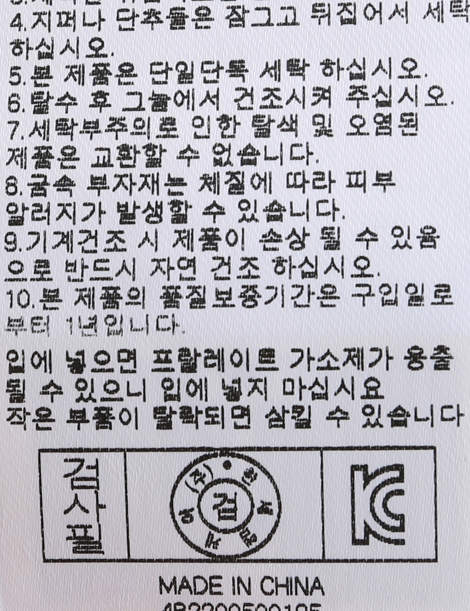 세탁방법 및 취급시 주의사항 본 제품은 손세탁 하십시오.(케어라벨참고)