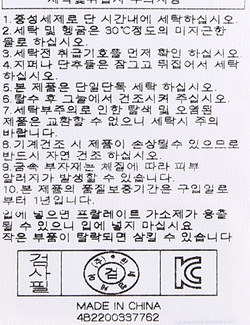 | 세탁방법 및 취급시 주의사항 | 중성세제로 단 시간내에 세탁하십시오.(케어라벨참고) |