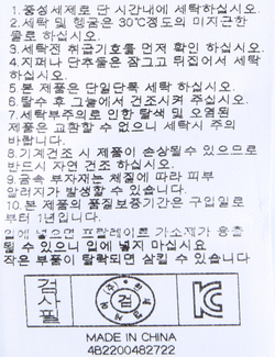 세탁방법 및 취급시 주의사항 중성세제로 단 시간내에 세탁하십시오.(케어라벨참고)