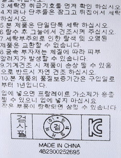 해당 인증정보는 판매자가 등록한 것으로 등록정보에 대한 일체의 책임은 판매자에게 있습니다.