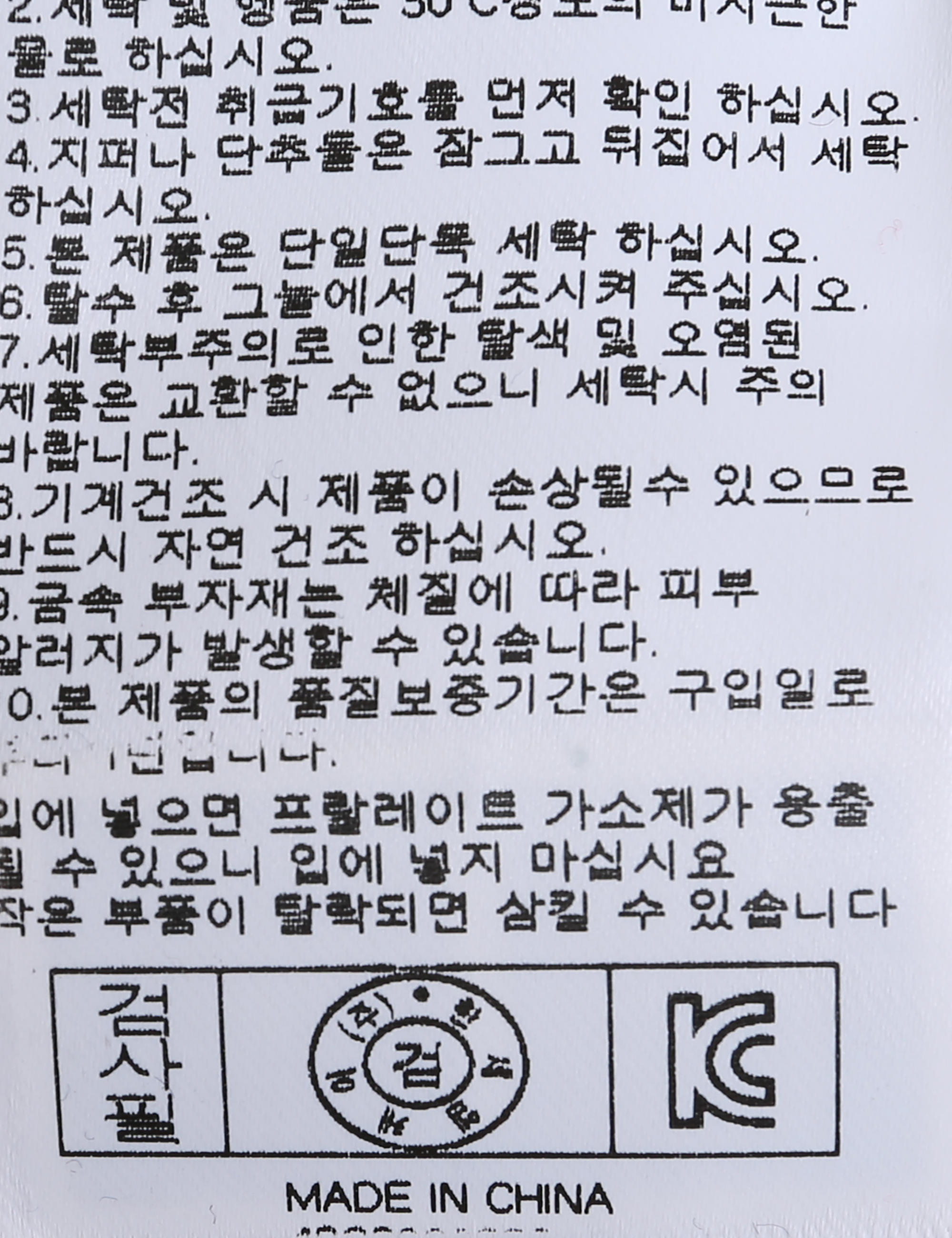 | 세탁방법 및 취급시 주의사항 | 중성세제로 단 시간내에 세탁하십시오.(케어라벨참고) |