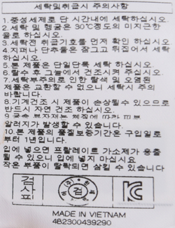 | 세탁방법 및 취급시 주의사항 | 본 제품은 손세탁 하십시오.(케어라벨참고) |