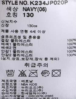 제품소재 [겉감]폴리에스터100% [배색1]폴리에스터100% [배색2]면100% [안감1]폴리에스터100% [안감2]폴리에스터100%