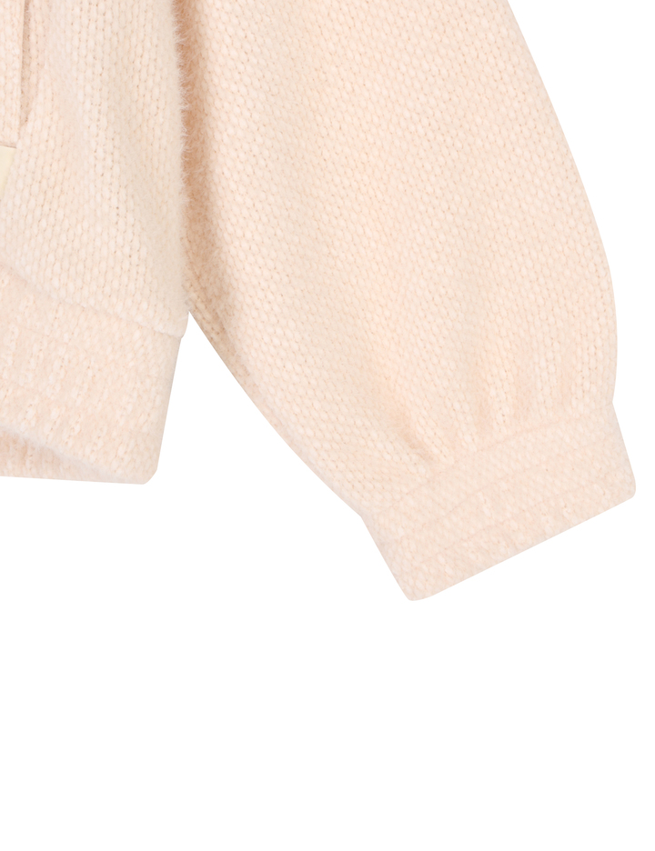 '-몽글몽글하고 따듯한 니트지 원단을 사용한 러블리한 무드의 크롭 후드집업