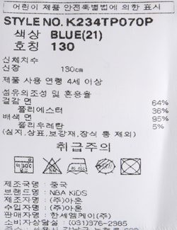 제품소재 [겉감]면64% 폴리에스터36% [배색]면95% 폴리우레탄5%