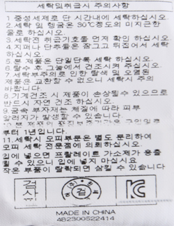 세탁방법 및 취급시 주의사항 중성세제로 단 시간내에 세탁하십시오.(케어라벨참고)