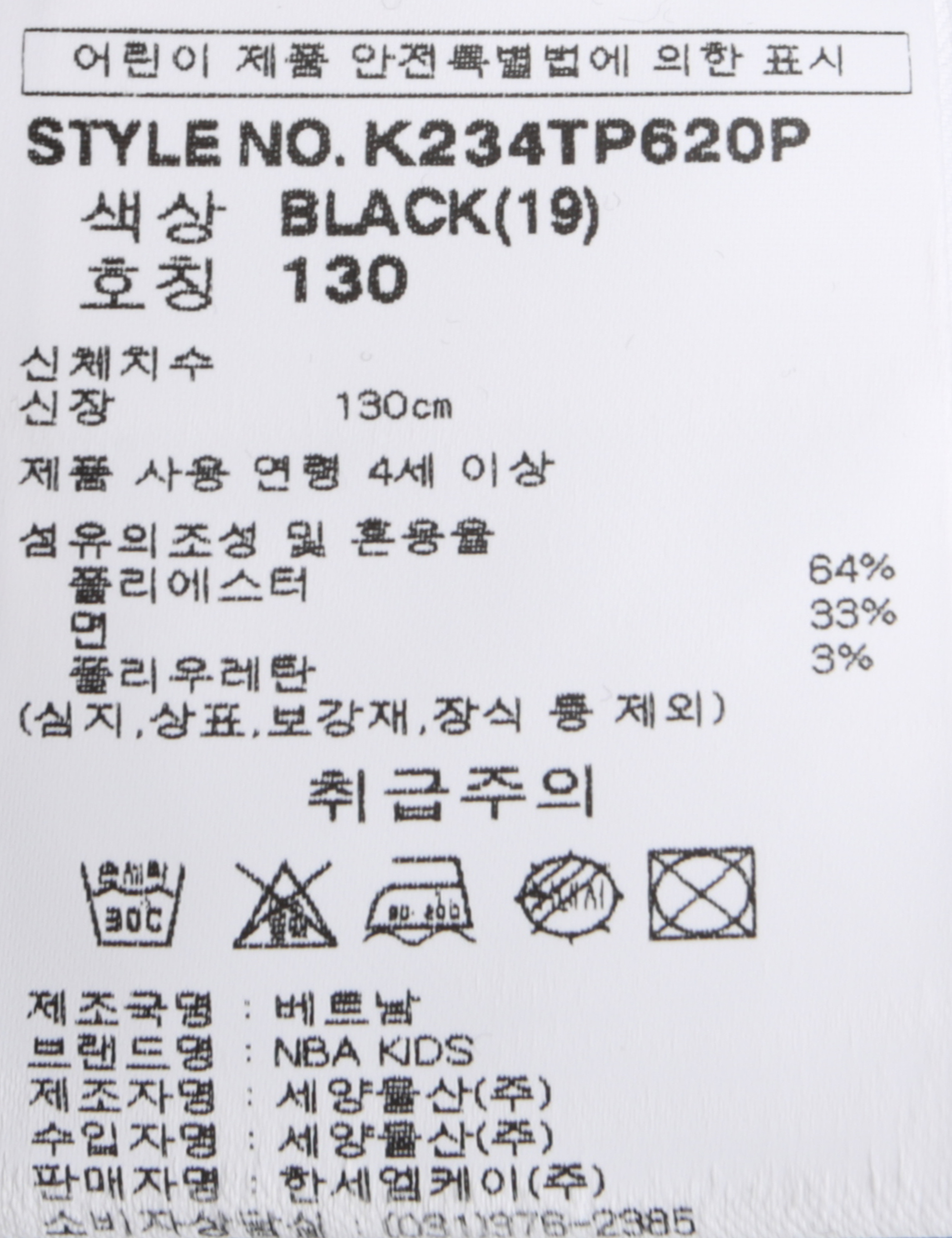 | 상품명 | NBA 여아 벨보아 레깅스(K234TP620P) |