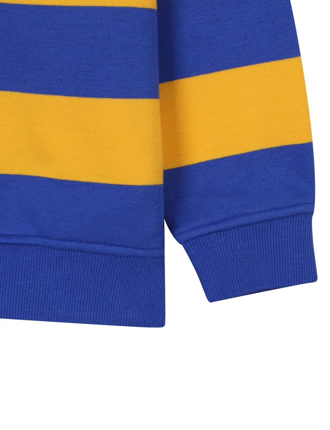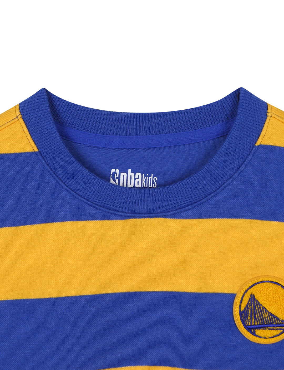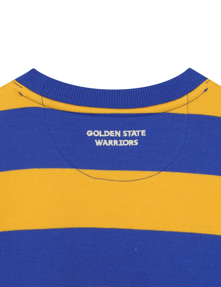 '-스포티한 컬러의 볼드한 스트라이프 패턴에 NBA팀로고 와펜으로 포인트를 준 맨투맨