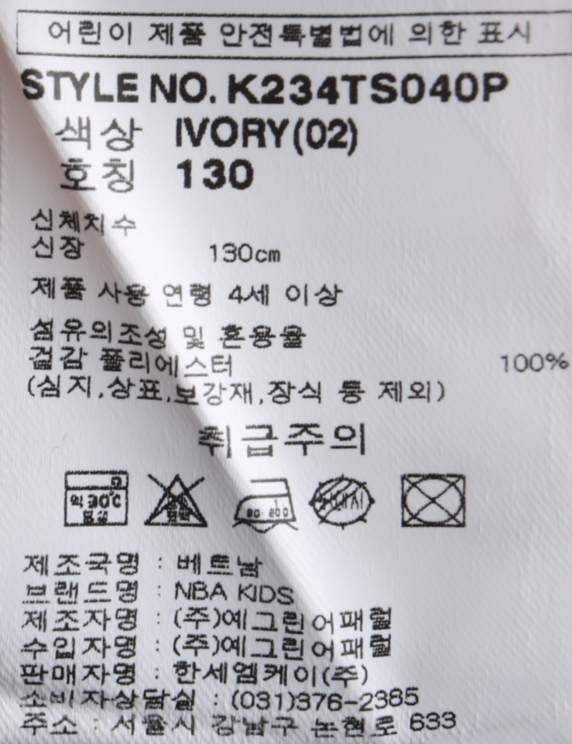 상품명 NBA 폴라폴리스 반집업 맨투맨(K234TS040P)