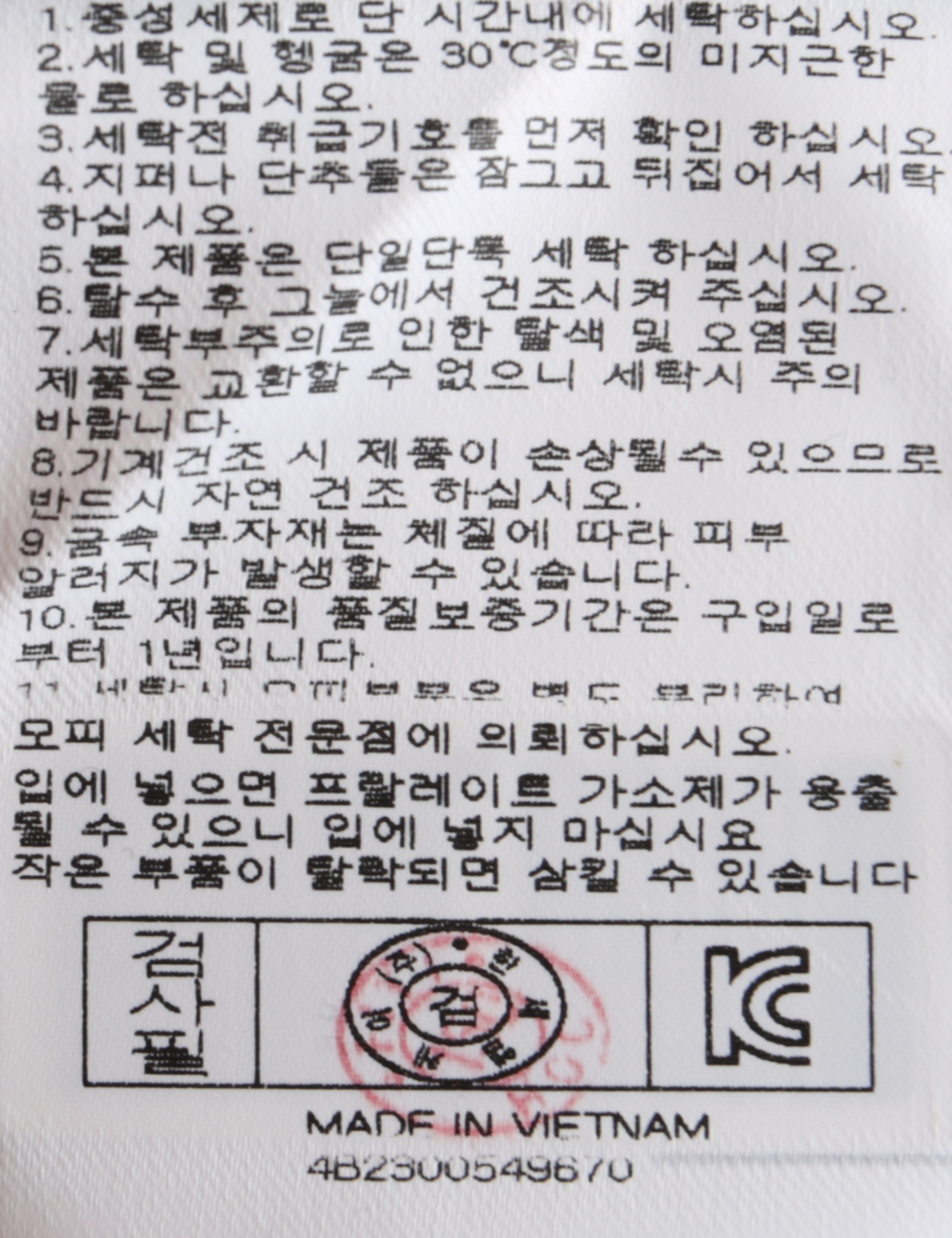 세탁방법 및 취급시 주의사항 중성세제로 단 시간내에 세탁하십시오.(케어라벨참고)