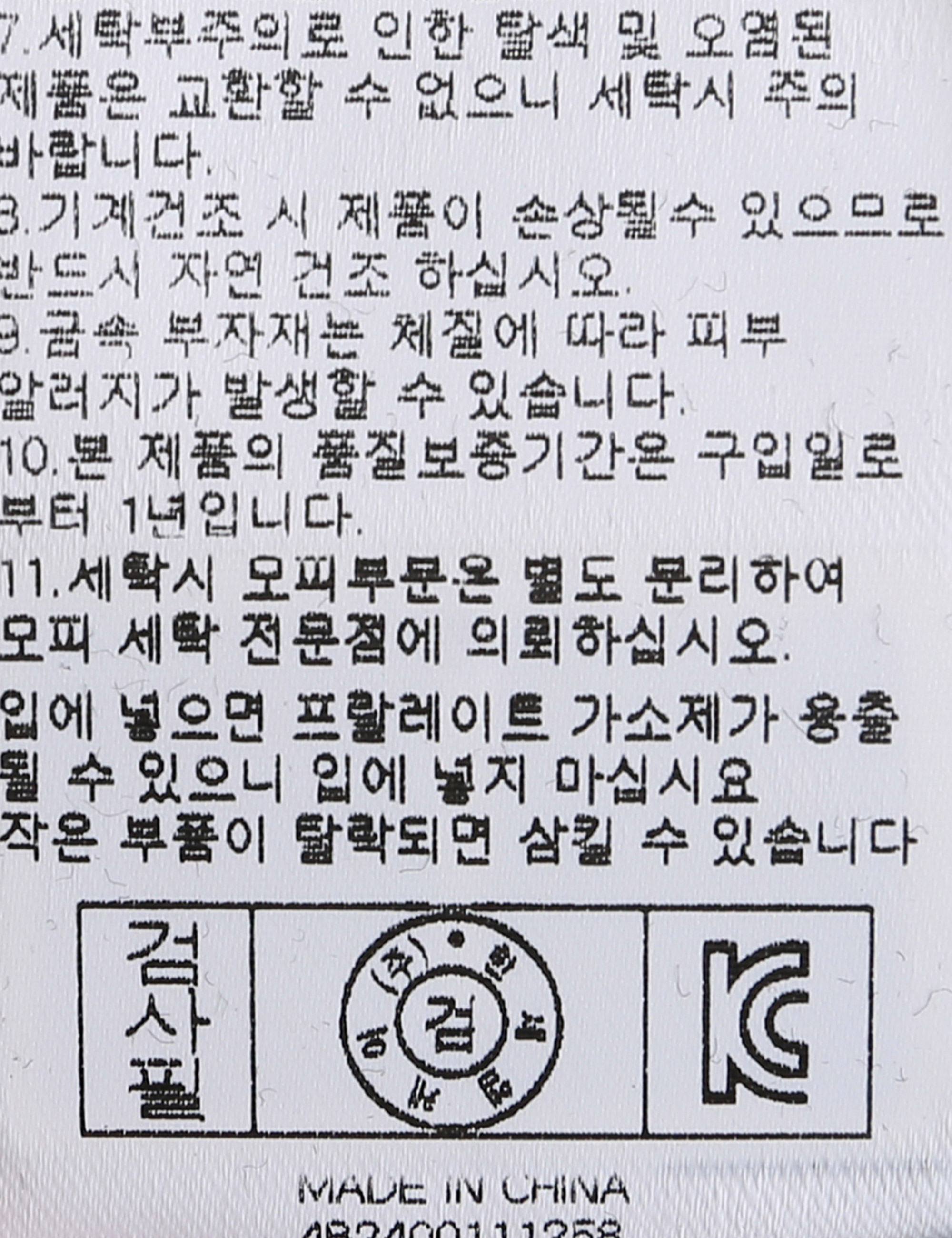 | 세탁방법 및 취급시 주의사항 | 중성세제로 단 시간내에 세탁하십시오.(케어라벨참고) |