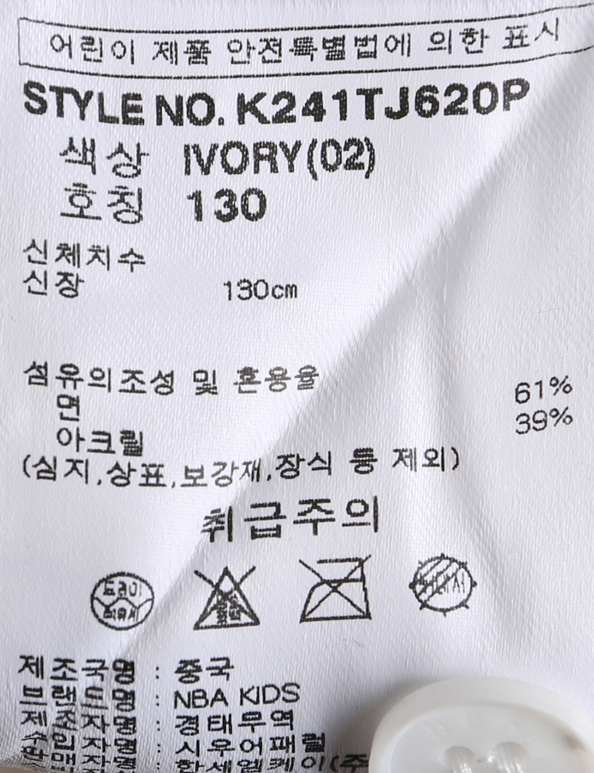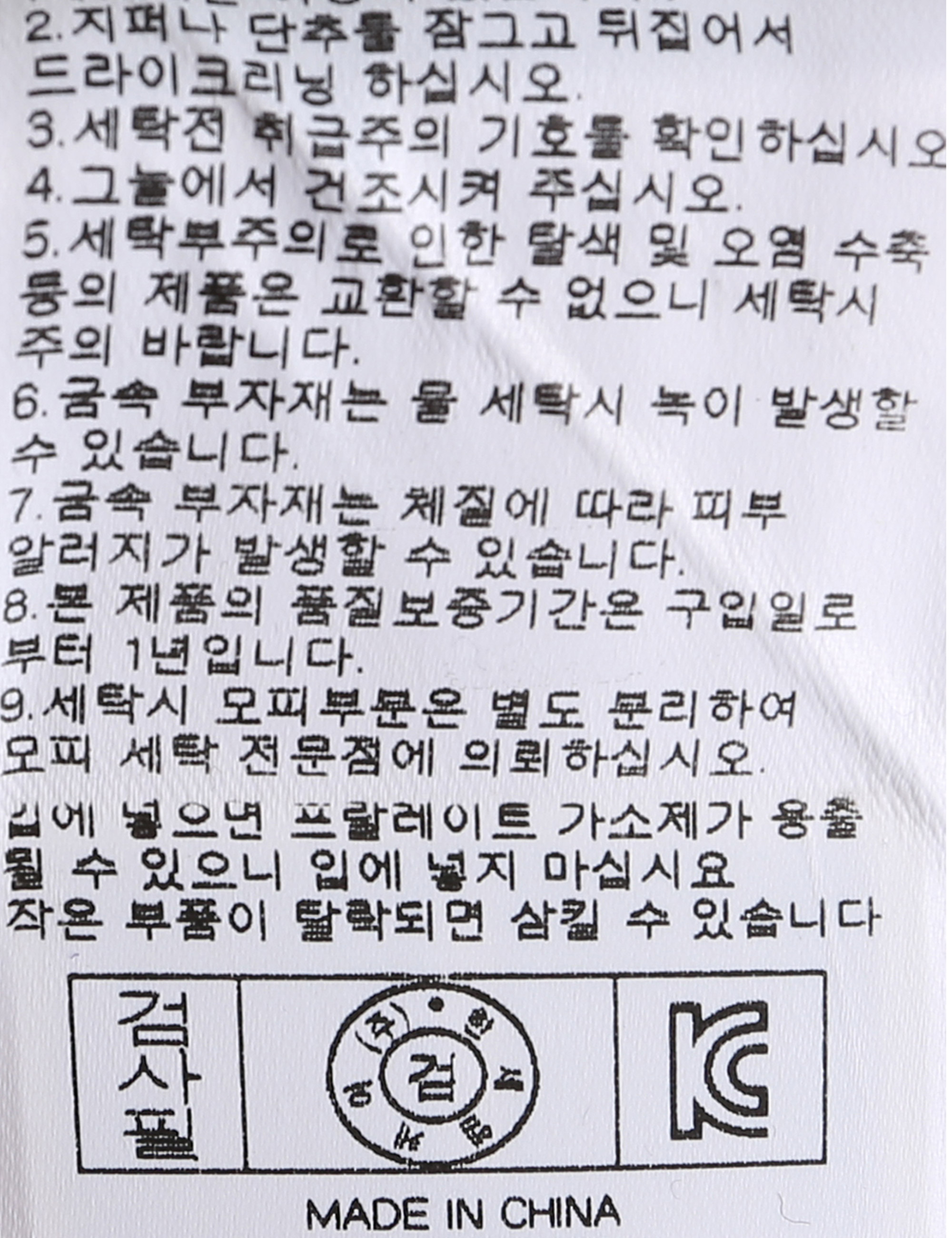| 세탁방법 및 취급시 주의사항 | 본 제품은 반드시 드라이크리닝 하십시오.(세탁라벨참고) |