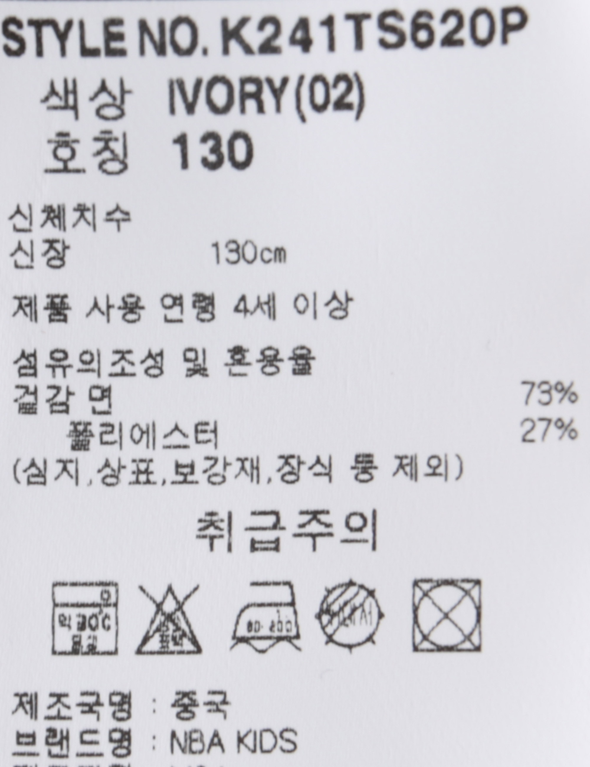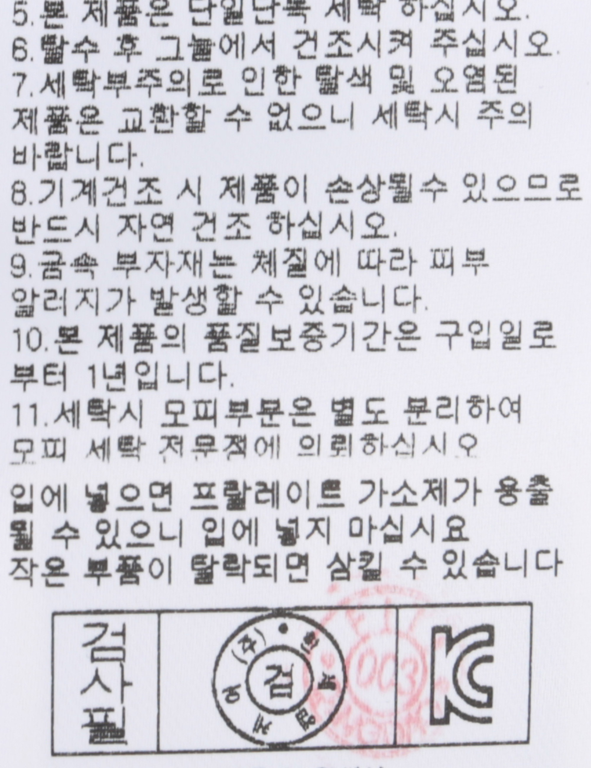 | 세탁방법 및 취급시 주의사항 | 중성세제로 단 시간내에 세탁하십시오.(케어라벨참고) |