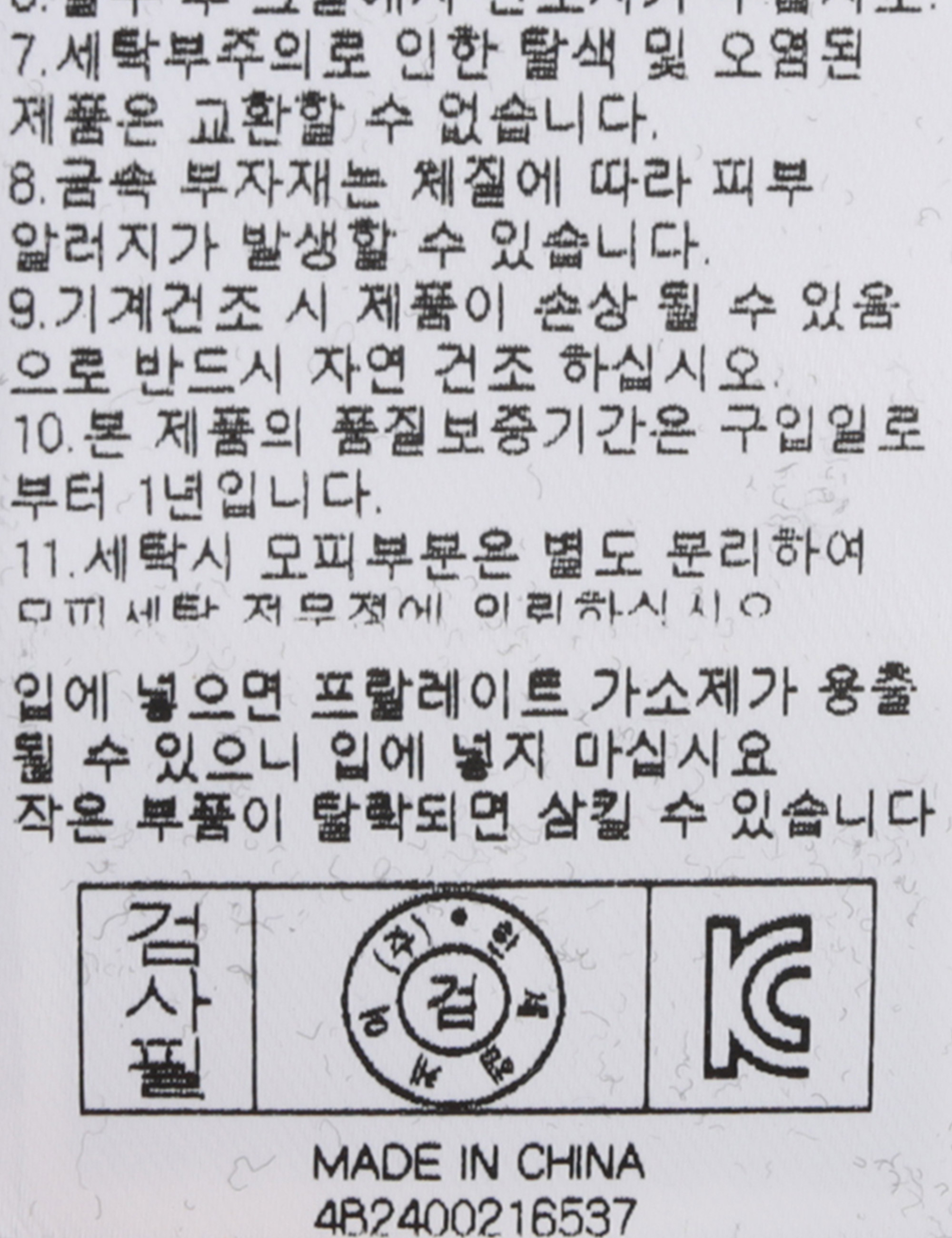 세탁방법 및 취급시 주의사항 본 제품은 손세탁 하십시오.(케어라벨참고)