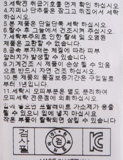 | 세탁방법 및 취급시 주의사항 | 본 제품은 손세탁 하십시오.(케어라벨참고) |