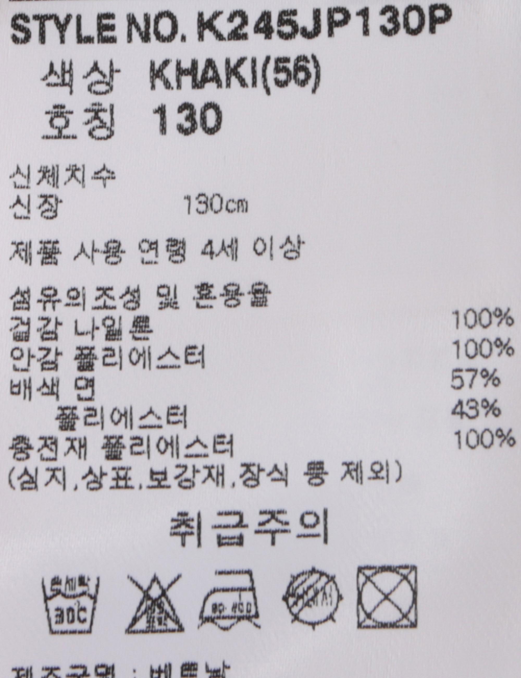 브랜드 홈 바로가기| 제품소재 | [겉감]나일론100% [안감]폴리에스터100% [배색]폴리에스터61% 면39% [충전재]폴리에스터100% |