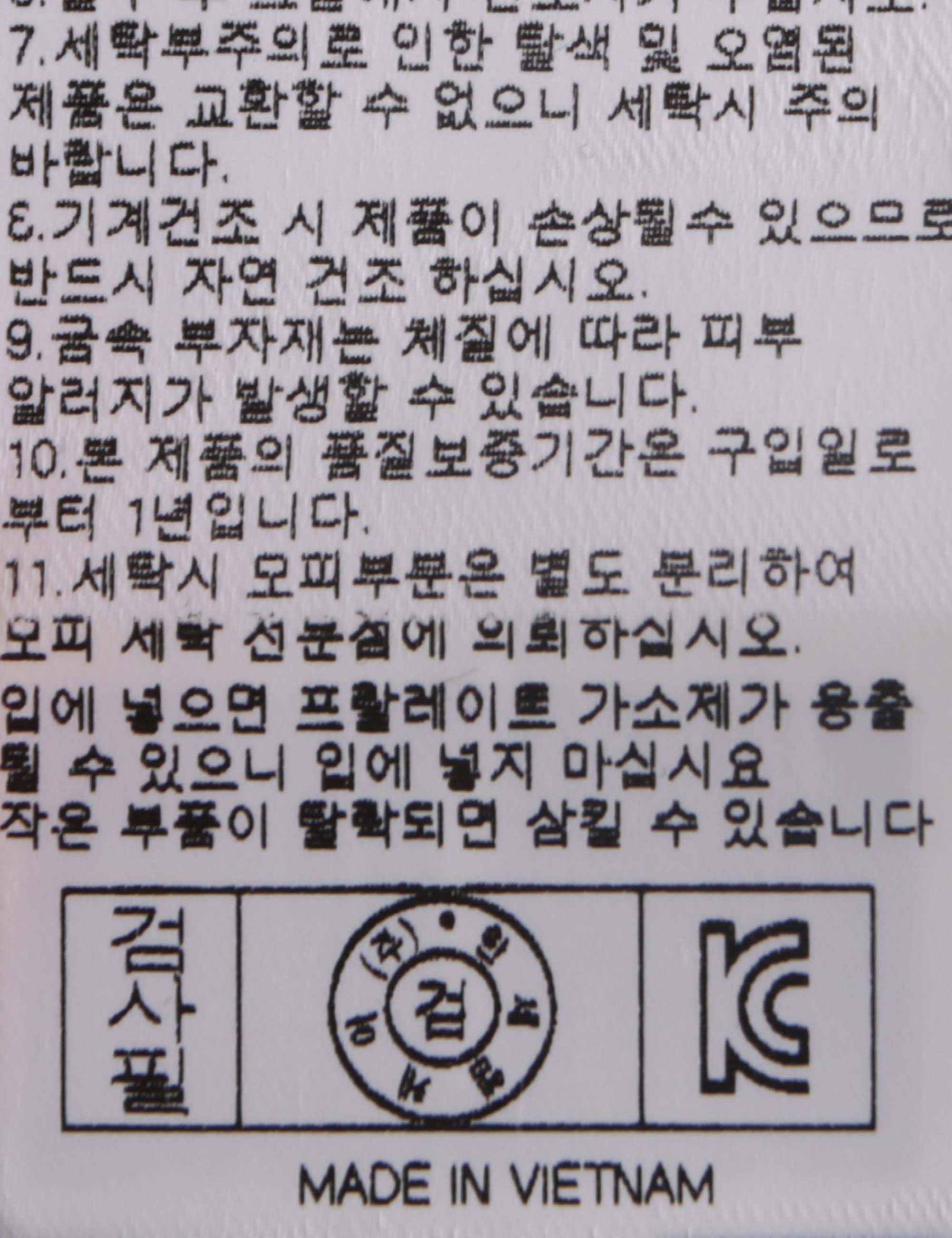 | 세탁방법 및 취급시 주의사항 | 중성세제로 단 시간내에 세탁하십시오.(케어라벨참고) |