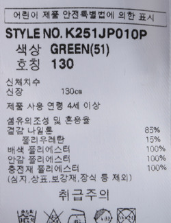 제품소재 [겉감]나일론85% 폴리우레탄15% [배색]폴리에스터100% [안감]폴리에스터100% [충전재]폴리에스터100%