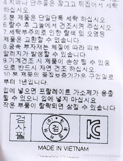 | 세탁방법 및 취급시 주의사항 | 본 제품은 손세탁 하십시오.(케어라벨참고) |