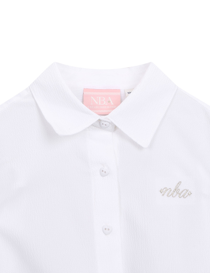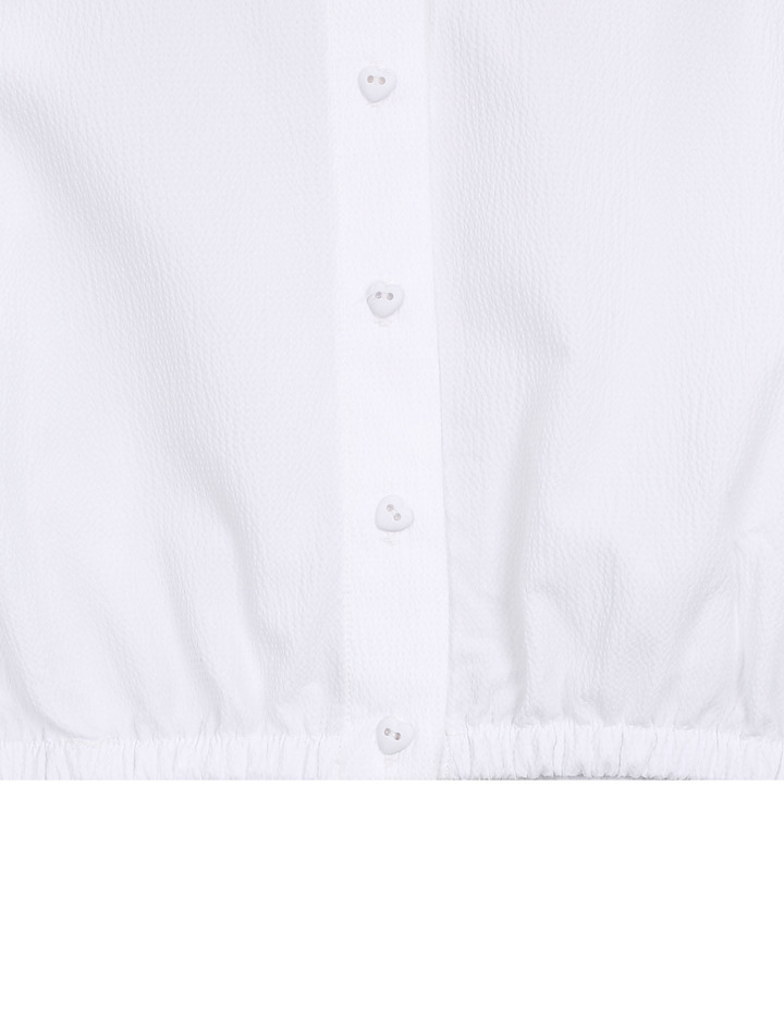 -하트모양의 귀여운 단추가 포인트이 며, 몸에 붙지 않는 시어서커 소재를 사용하여 방과후 방송댄스를 배우는 친구들도 멋스럽고 편안한 착용감으로 착용이 가능한 아이템