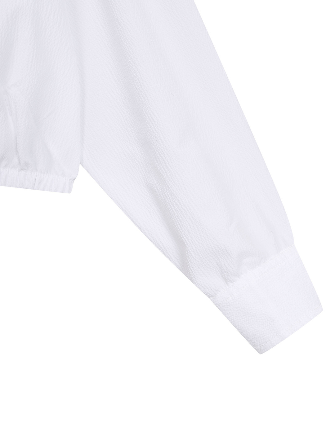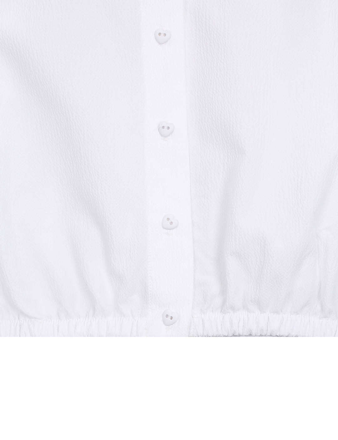 -크롭 기장감의 커버업 셔츠스타일로 전체 단추를 잠궈서 단정한 스타일로 또는 단추를 다 풀어서 가벼운 아우터 스타일로도 연출이 가능한 아이템