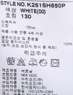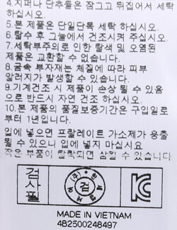 | 세탁방법 및 취급시 주의사항 | 본 제품은 손세탁 하십시오.(케어라벨참고) |