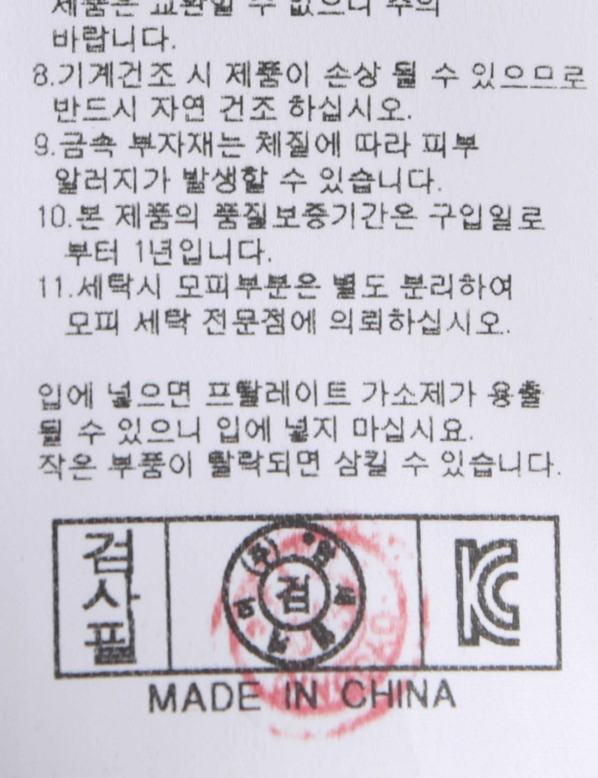 세탁방법 및 취급시 주의사항 중성세제로 단 시간내에 세탁하십시오.(케어라벨참고)