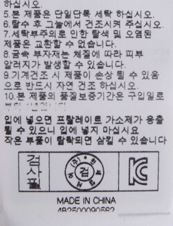 | 세탁방법 및 취급시 주의사항 | 본 제품은 손세탁 하십시오.(케어라벨참고) |