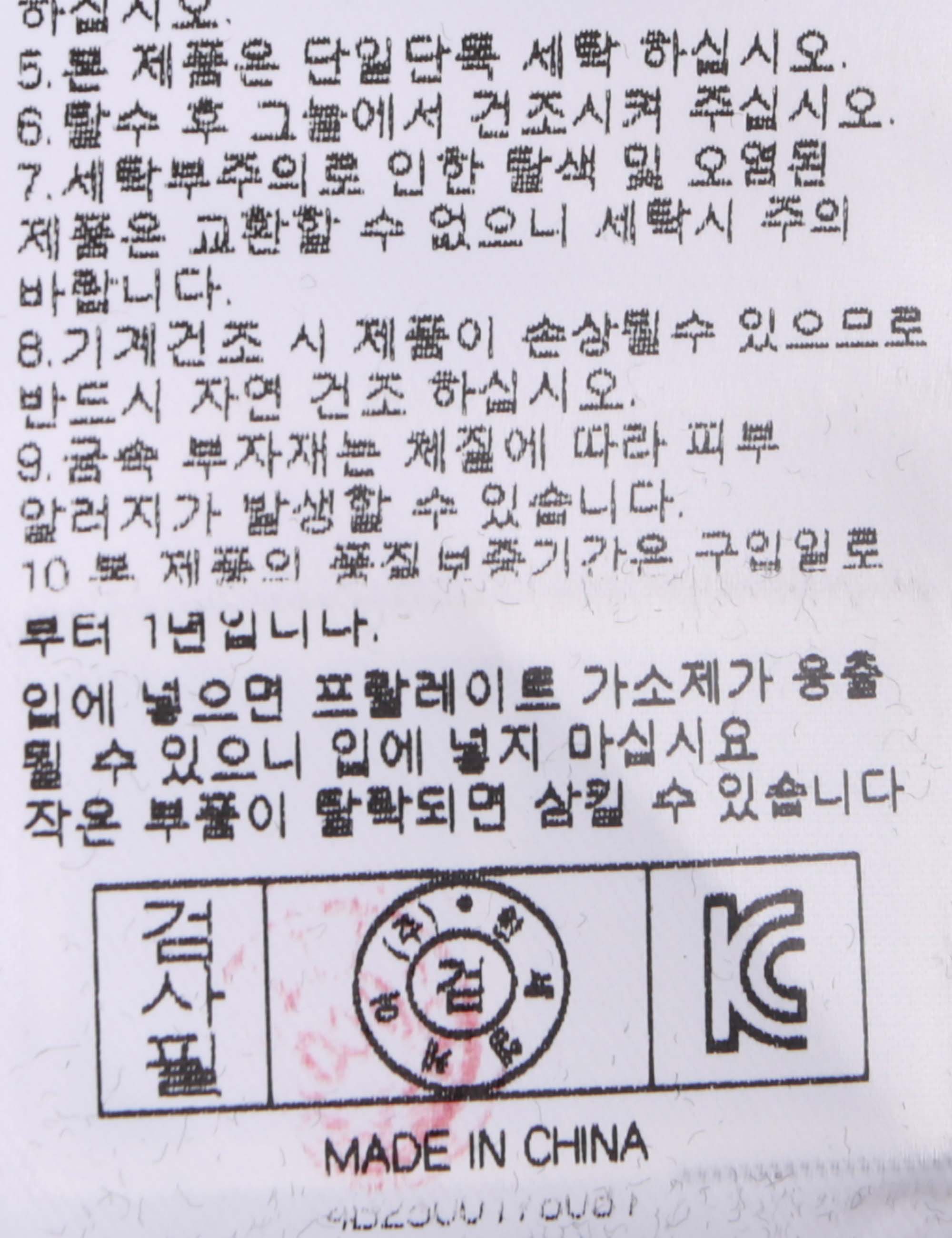 세탁 시에 이염이 발생할 수 있으므로 단독 세탁 필요.