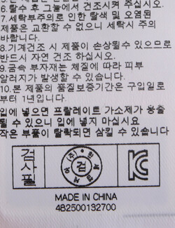 | 세탁방법 및 취급시 주의사항 | 중성세제로 단 시간내에 세탁하십시오.(케어라벨참고) |