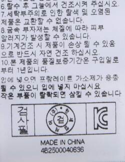 해당 인증정보는 판매자가 등록한 것으로 등록정보에 대한 일체의 책임은 판매자에게 있습니다.