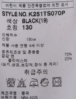 | 상품명 | NBA 빅로고 맨투맨(K251TS070P) |
