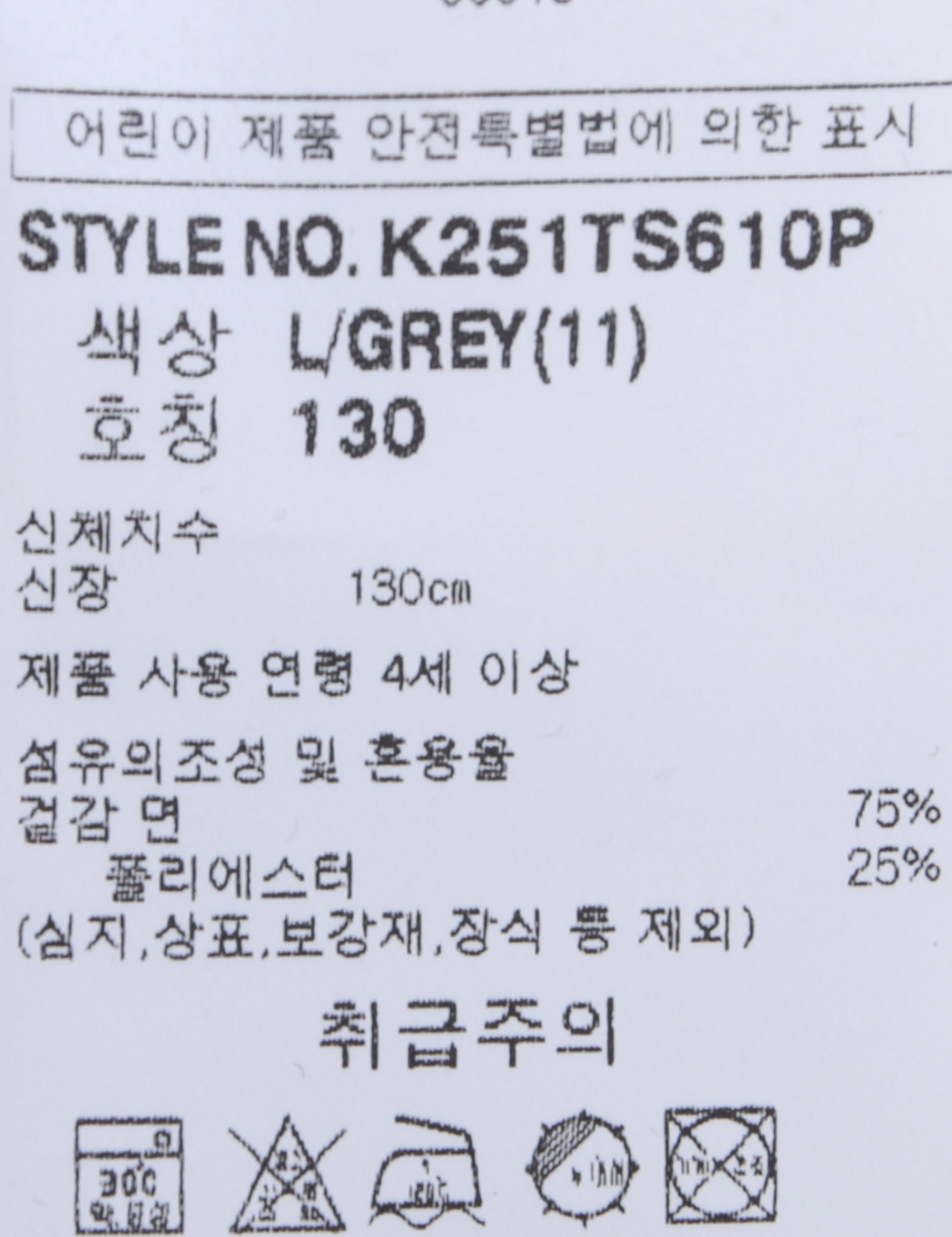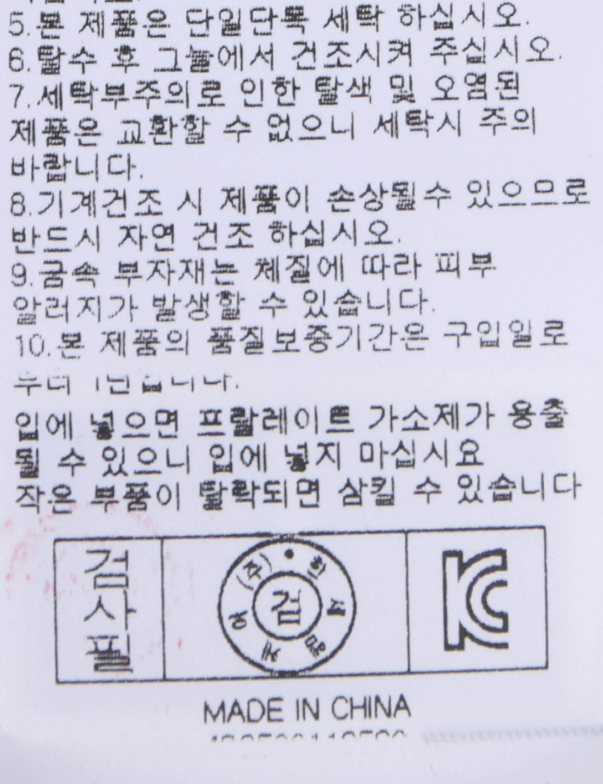 | 세탁방법 및 취급시 주의사항 | 중성세제로 단 시간내에 세탁하십시오.(케어라벨참고) |