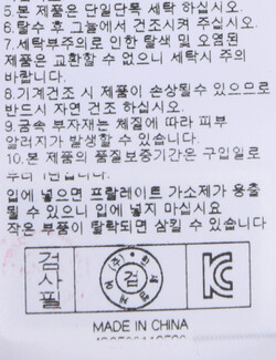세탁방법 및 취급시 주의사항 중성세제로 단 시간내에 세탁하십시오.(케어라벨참고)