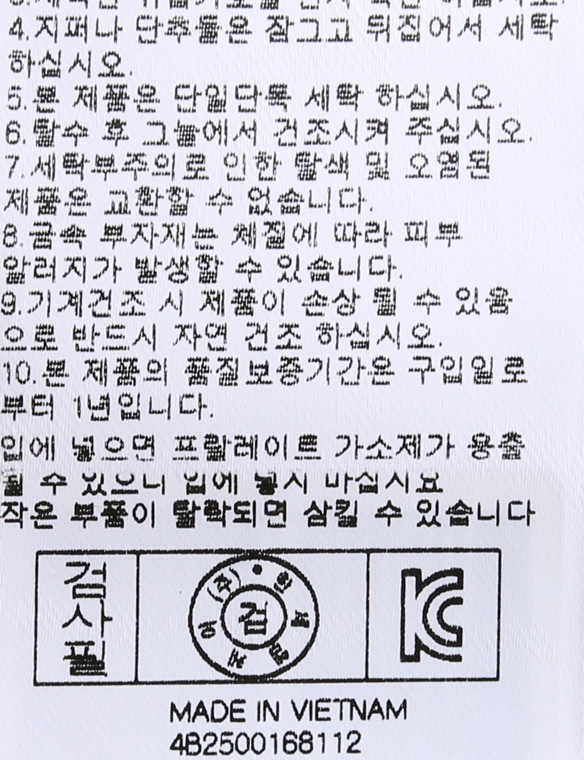 | 세탁방법 및 취급시 주의사항 | 본 제품은 손세탁 하십시오.(케어라벨참고) |