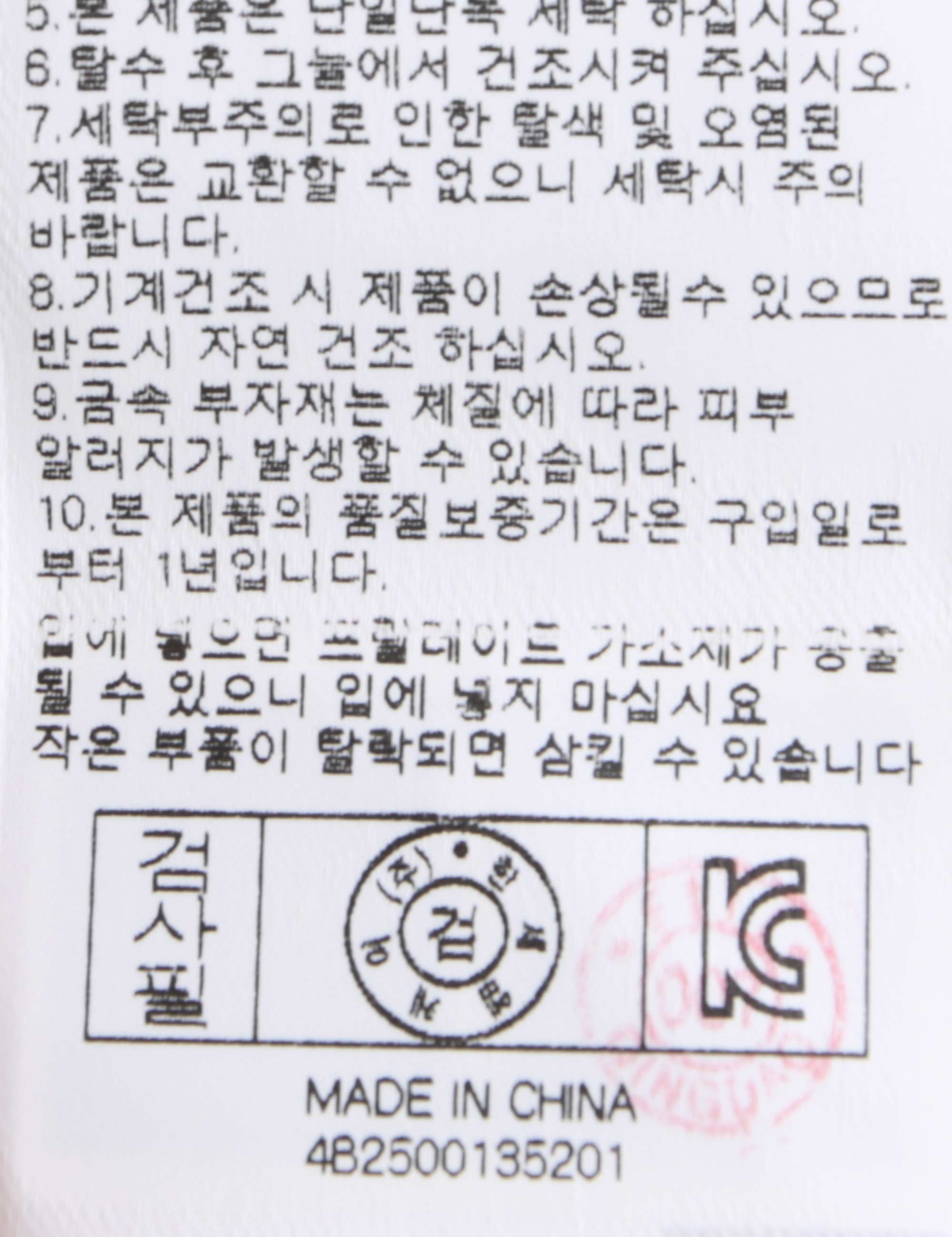 | 세탁방법 및 취급시 주의사항 | 중성세제로 단 시간내에 세탁하십시오.(케어라벨참고) |