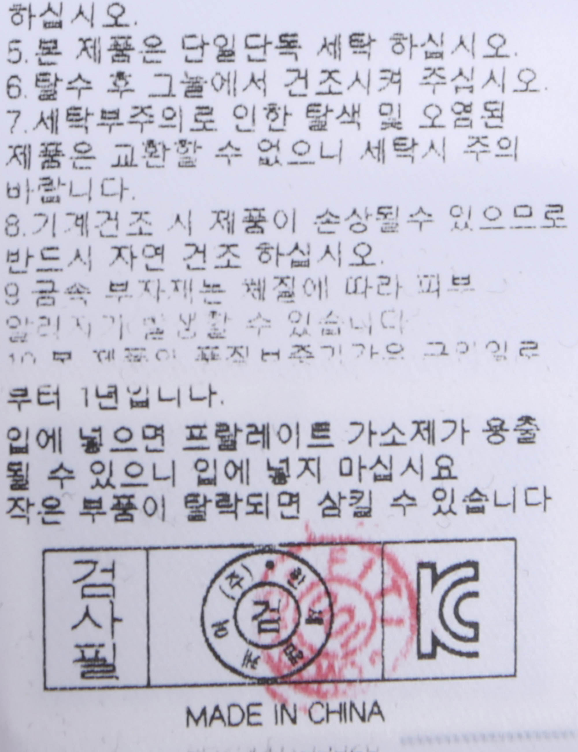세탁방법 및 취급시 주의사항 중성세제로 단 시간내에 세탁하십시오.(케어라벨참고)