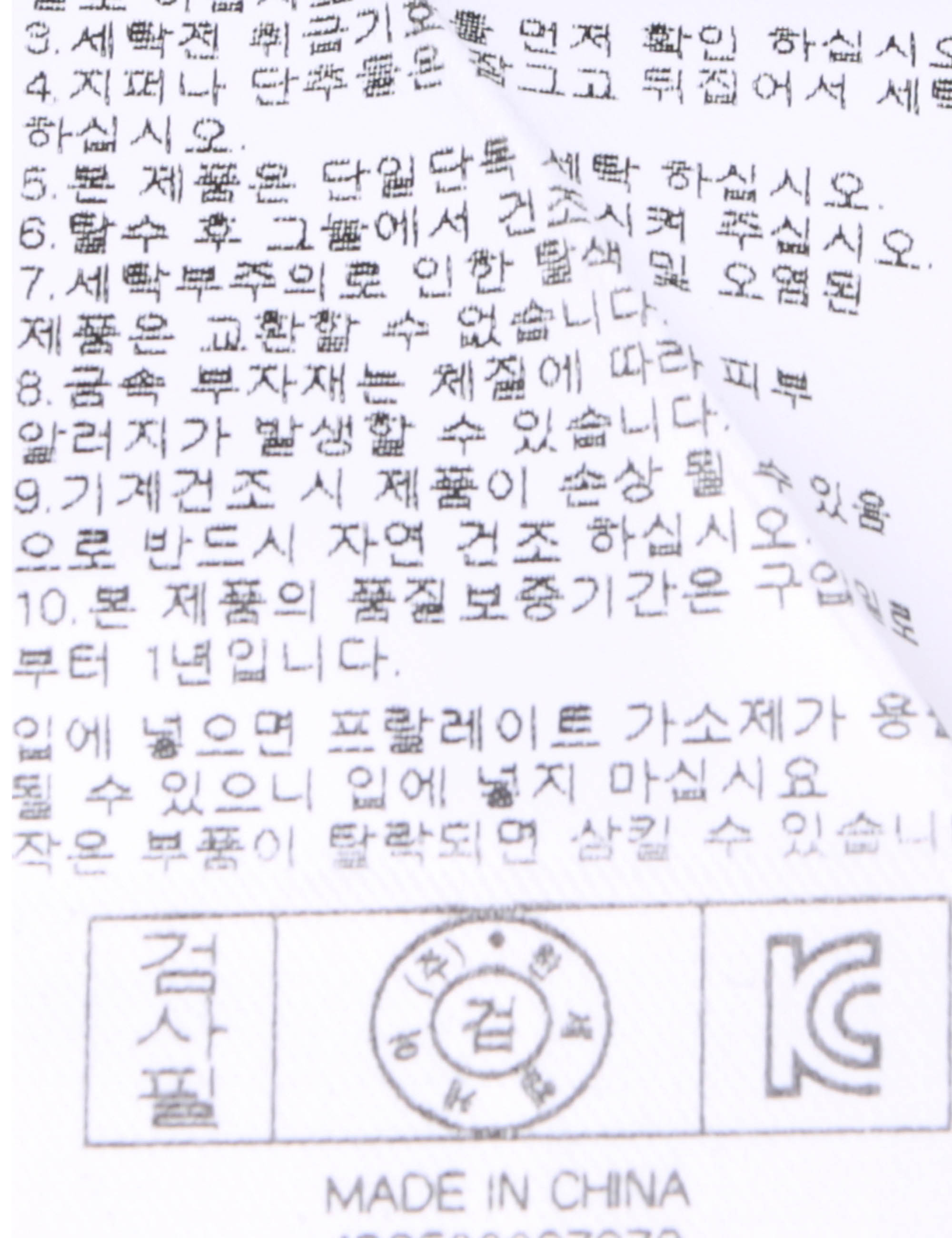 세탁방법 및 취급시 주의사항 본 제품은 손세탁 하십시오.(케어라벨참고)