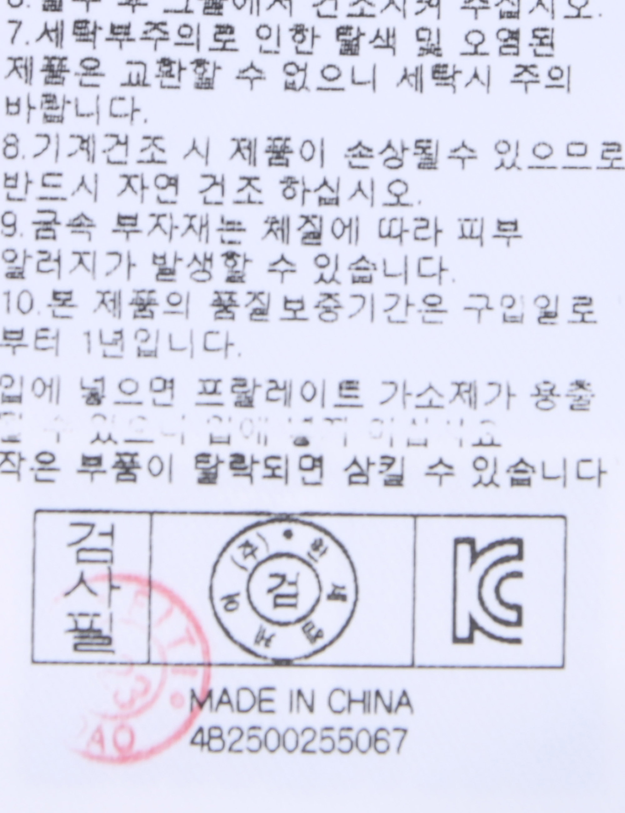 | 세탁방법 및 취급시 주의사항 | 중성세제로 단 시간내에 세탁하십시오.(케어라벨참고) |
