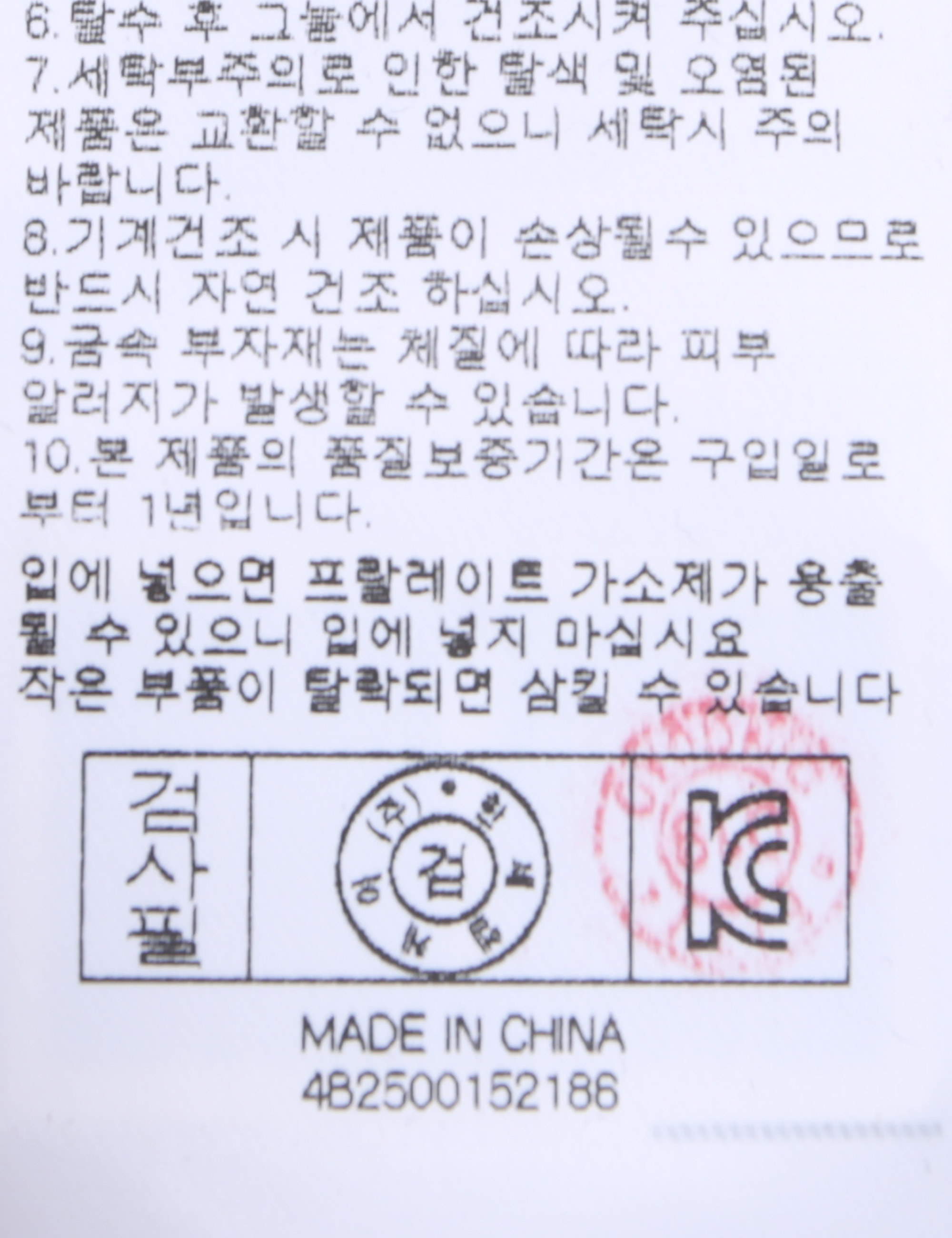 | 세탁방법 및 취급시 주의사항 | 중성세제로 단 시간내에 세탁하십시오.(케어라벨참고) |