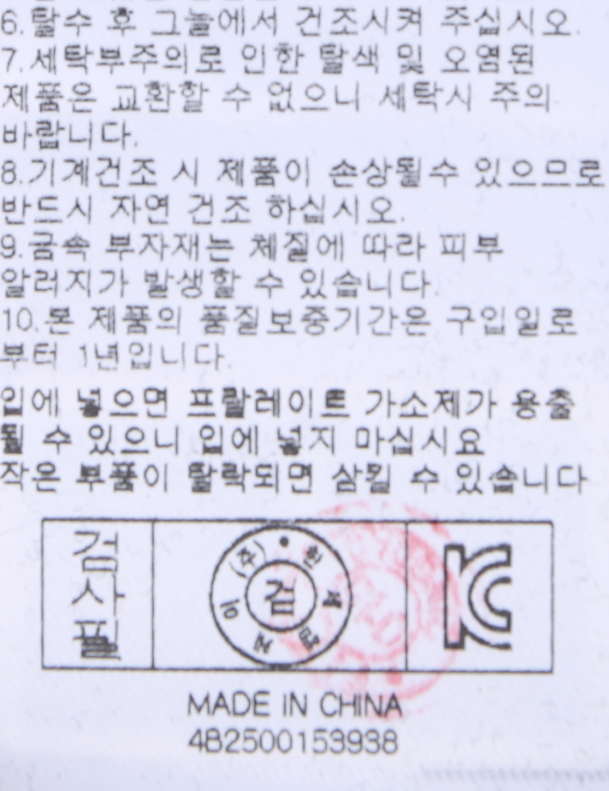 | 세탁방법 및 취급시 주의사항 | 중성세제로 단 시간내에 세탁하십시오.(케어라벨참고) |