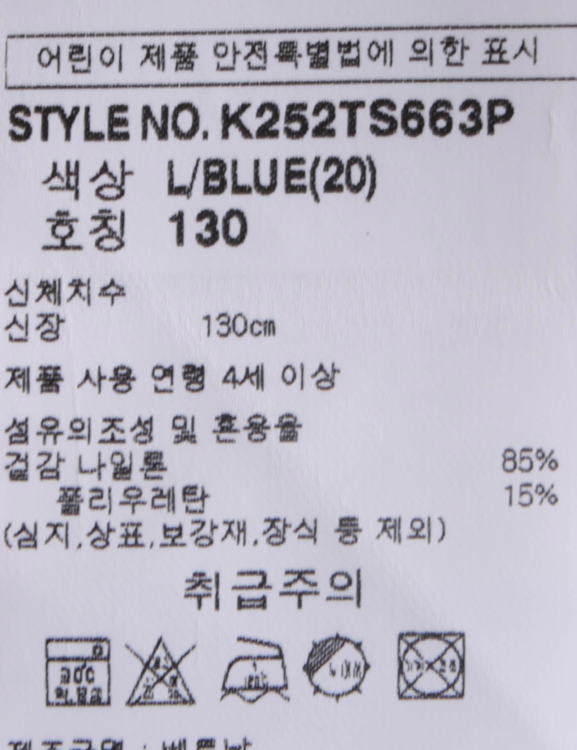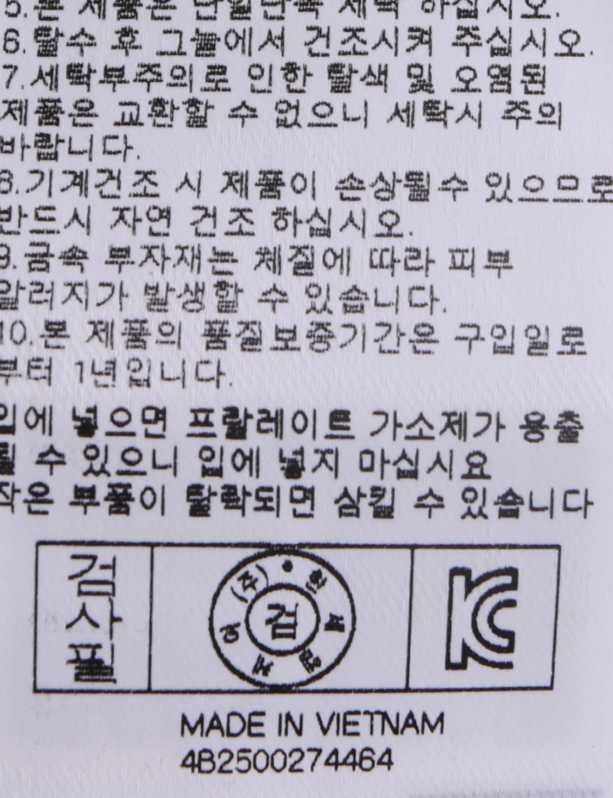 | 세탁방법 및 취급시 주의사항 | 중성세제로 단 시간내에 세탁하십시오.(케어라벨참고) |