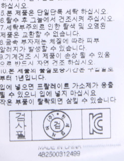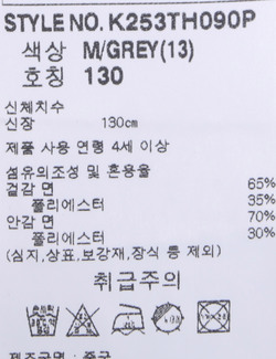 | 세탁방법 및 취급시 주의사항 | 본 제품은 손세탁 하십시오.(케어라벨참고) |
