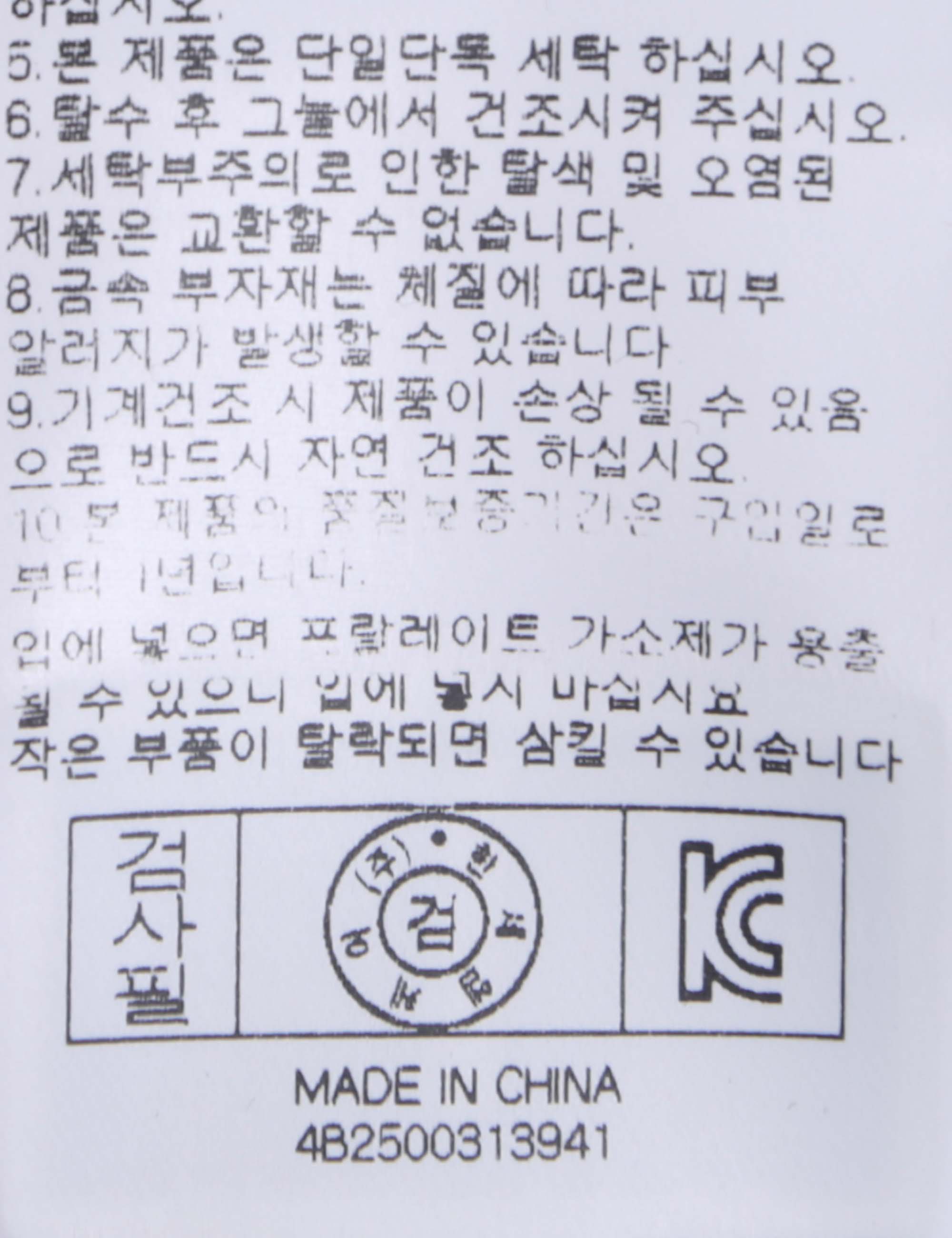 | 세탁방법 및 취급시 주의사항 | 본 제품은 손세탁 하십시오.(케어라벨참고) |