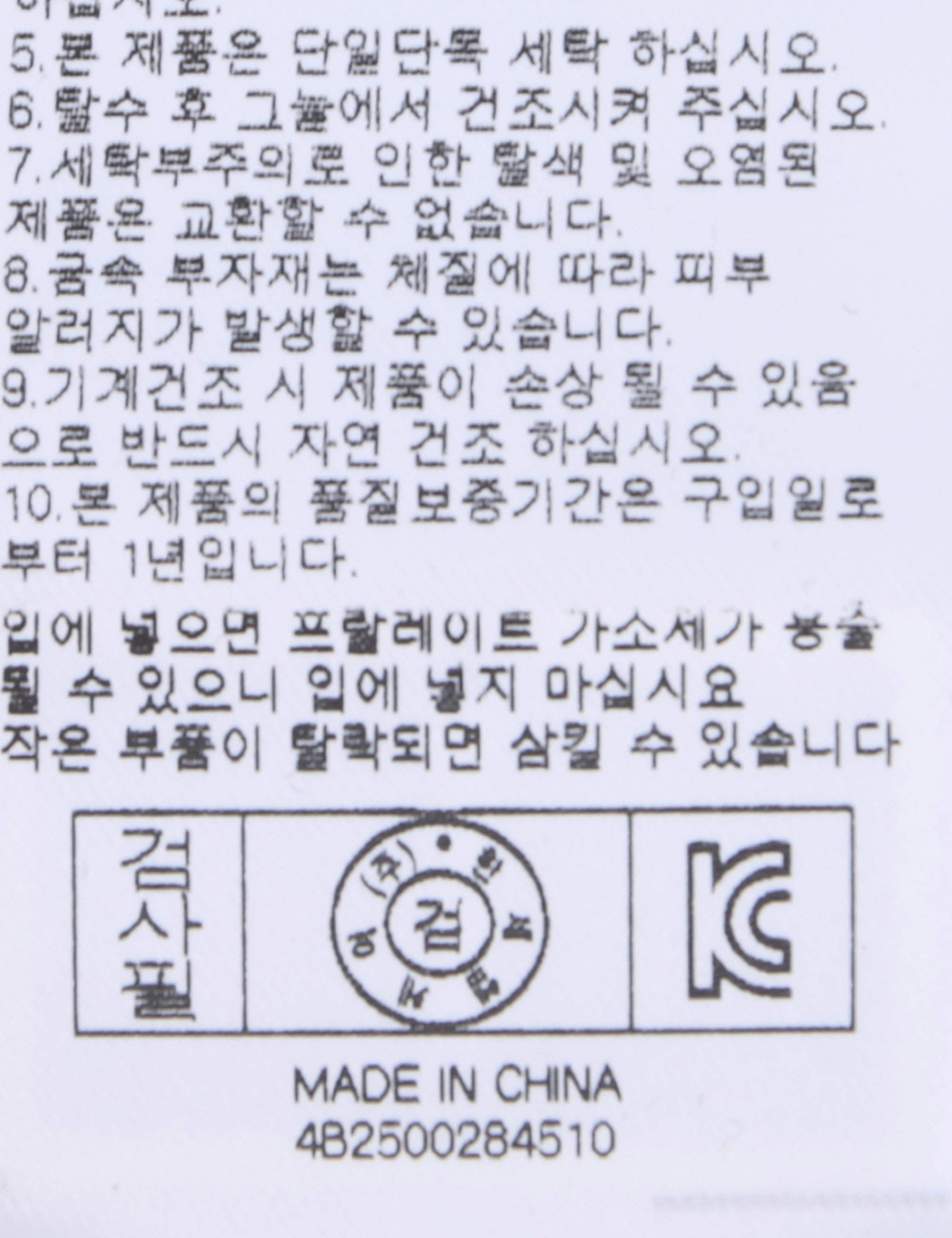 세탁방법 및 취급시 주의사항 본 제품은 손세탁 하십시오.(케어라벨참고)