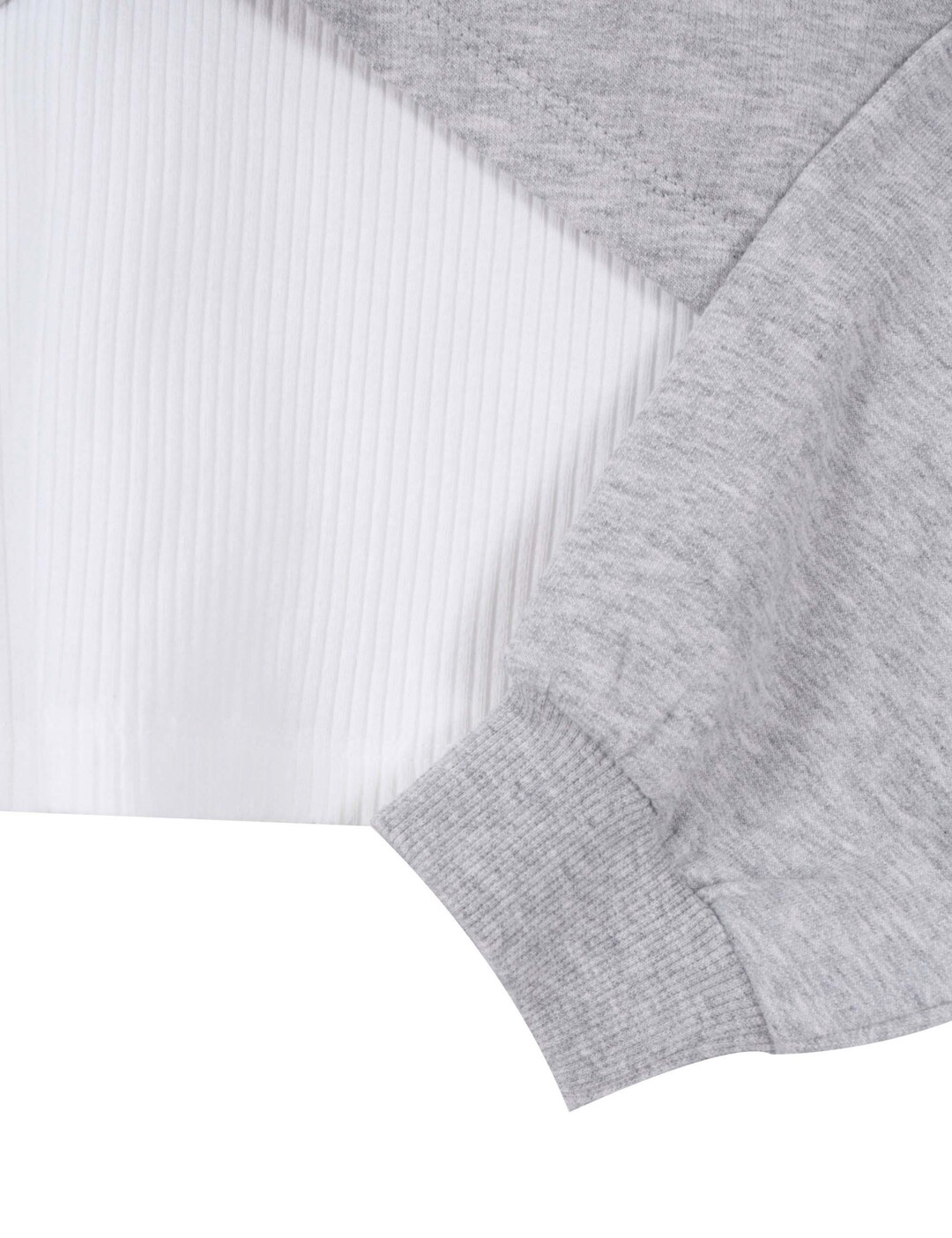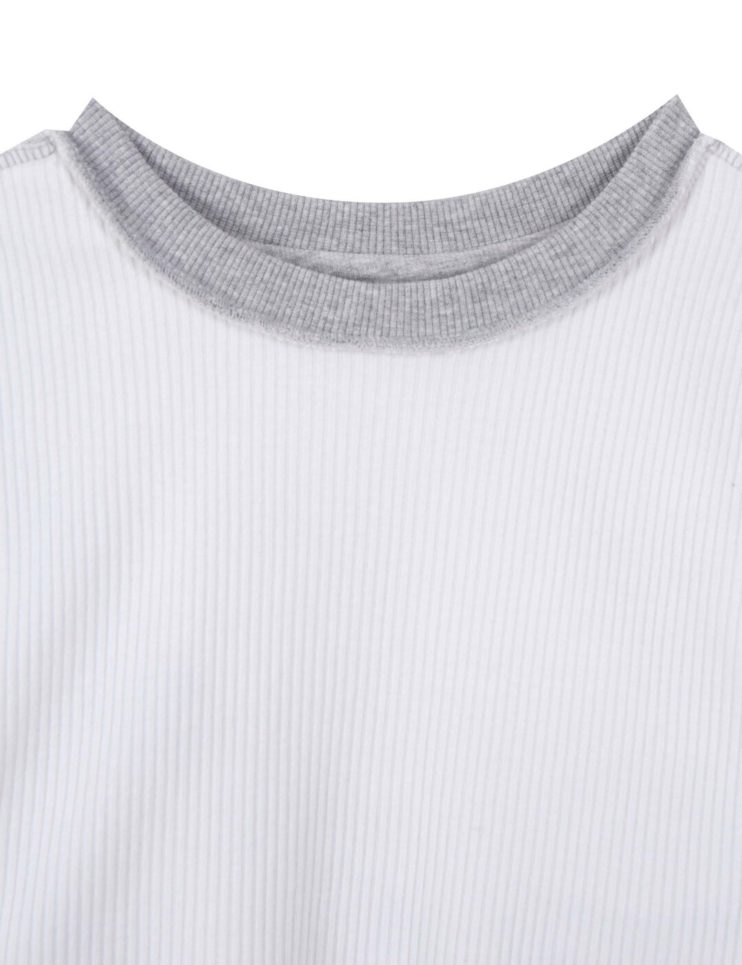 *겉감은 크롭 기장의 겹침 디자인으로 유니크하게, 안쪽 골지원단으로 핏한 착용감을 제안